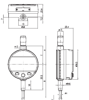 Swiss Made - 3-year guarantee. Programmable digital dial indicator made of aluminium. Mounting shaft Ø 8-h6,exchangeable probe tips M2.5, operation via signal line Power USB / RS-232 enables operation without battery.