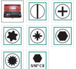 5 multi-tooth bits no. M5, M6, M8, M10, M12
