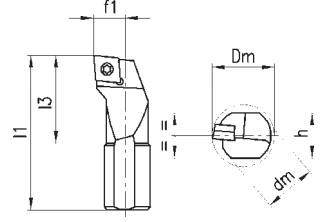 Angle of entry 95°, screw clamping, steel boring bar, angle of cut 0°, angle of inclination -6° to -15°
