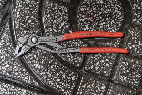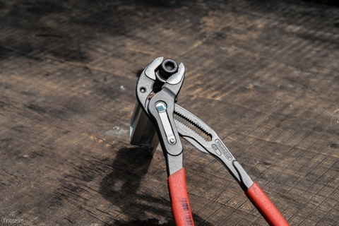 Kìm mỏ quạ chất lượng cao từ KNIPEX như KNIPEX Cobra® là thiết kế đặc biệt tiện dụng. Là công cụ điều chỉnh lý tưởng cho các kích cỡ phôi khác nhau. Nút khoá tự động kích hoạt ngay khi bỏ tay ra và nó có thể giữ ở trạng thái đó rất cứng. Sau khi khoá thì có thể chỉ cần đẩy cán bên trên, không cần vừa đẩy vừa bóp hai cán lại.