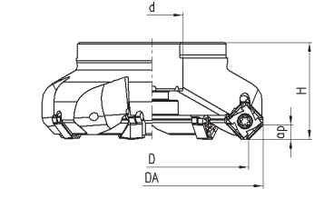 Face mill 45° nickel-plated with internal coolingand 8 effective cutting edges and rectangular,