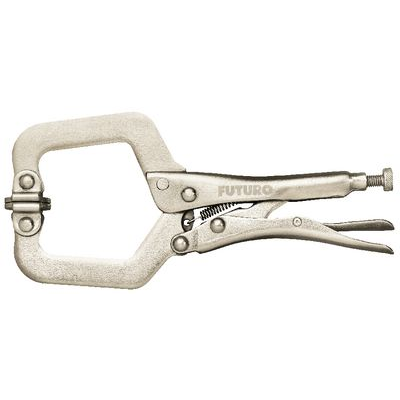 444315 - Locking pliers FUTURO. Chrome-vanadium steel, nickel-plated, with hinged jaws, for parallel clamping, C-shaped, designed as a clamp for angle sections and T sections, adjustable and lockable, with release trigger, large clamping width, can also be used instead of sliding clamps.
