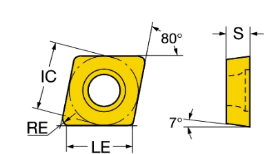 Single-sided, rhombic 80°, ground.