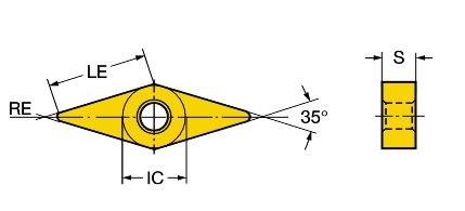 Double-sided, rhombic 35°.